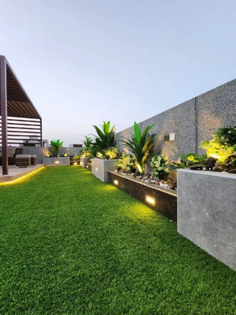 # العشب الصناعيالعشب الصناعي هو الحل الأمثل لمن يبحثون عن مسطح أخضر دائم دون عناء الصيانة. نستخدم أفضل أنواع العشب الصناعي الإيطالي والأمريكي، الذي يتميز بـ:- مقاومة عالية للحرارة والأشعة فوق البنفسجية.- ألوان ثابتة لا تتغير مع الوقت.- نعومة وكثافة تشبه العشب الطبيعي.- لا يحتاج إلى سقي أو جز أو تسميد.- مناسب للحدائق، الملاعب، المسابح، والواجهات.#